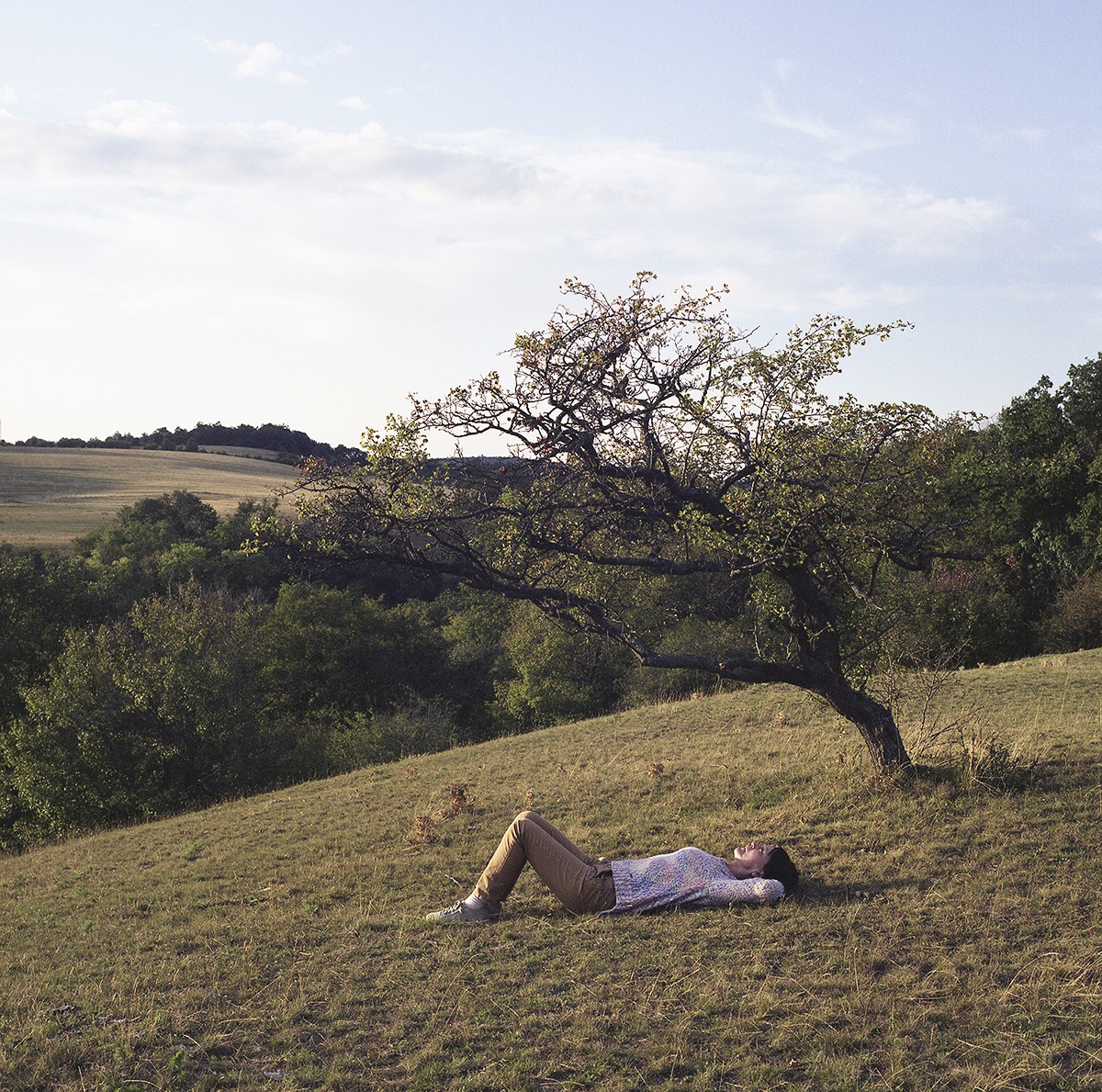 Kőrösparti Beatrix Sétáink című sorozata édesanyjával és kutyájukkal való meditatív barangolásaik képi lenyomata.
