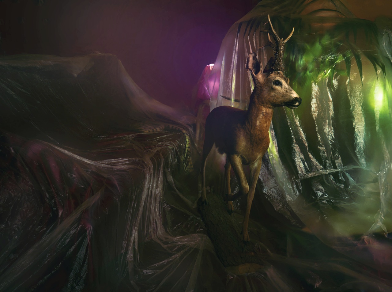 A gondosan kiválasztott helyszínekkel, a színek és formák érzéki játékával sikerült Rékának életet lehelnie egy virágboltból kölcsönvett, műanyag őznek a tekintetébe. Bár egy finoman megelevenedő giccsről van szó, mely látványában édeskés, meseszerű, ahogy a felszín alá nézünk, eláraszt minket valami sötét, nyugtalanító érzés. Magány, hontalanság – ki mit lát bele. Nincs egyértelmű jelentése a képeknek, pont annyira direkt, hogy a szemlélő szabad asszociációjára bízza a történetet. Mi magunk dönthetjük el, hogy egy ártatlan gyerekmese illusztrációját látjuk, vagy valami sokkal mélyebb, személyes történetről van szó.