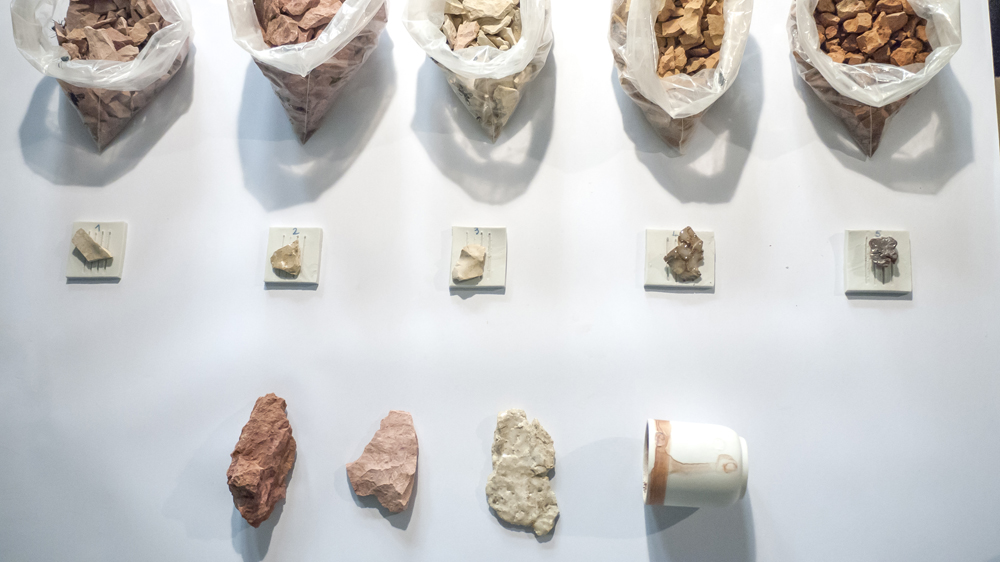 Sáfrán Anett X%B bauxit inspirálta tárgyai a kőzet minden tulajdonságát – színvariációk, formakarakter, textúra – felhasználják, így a gyermekkori emlékek helyszíne inspirálta tárgyak egy személyes tájképpé állnak össze az asztalon.