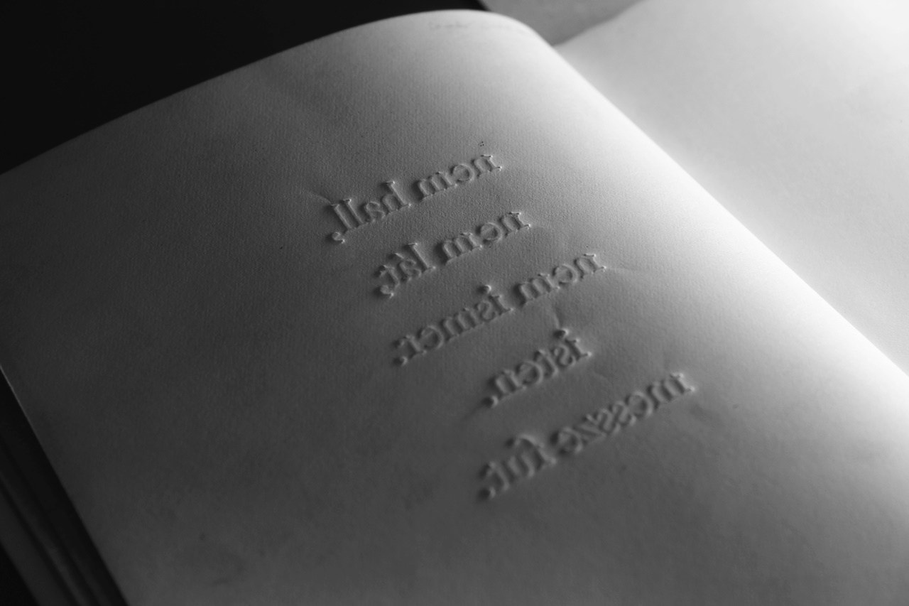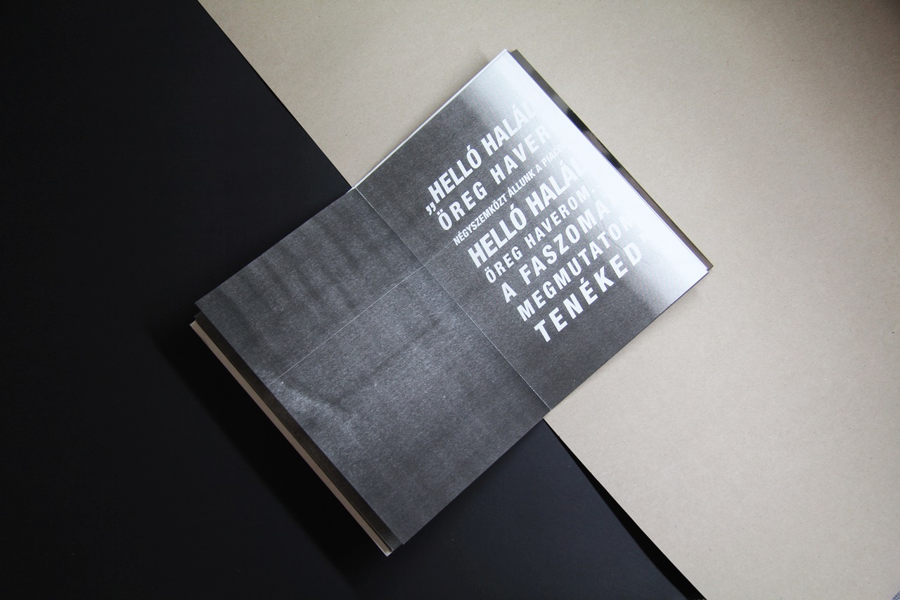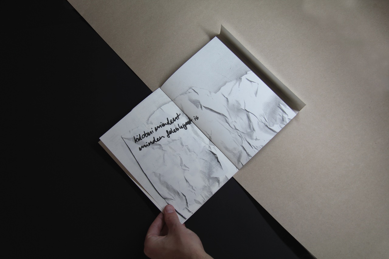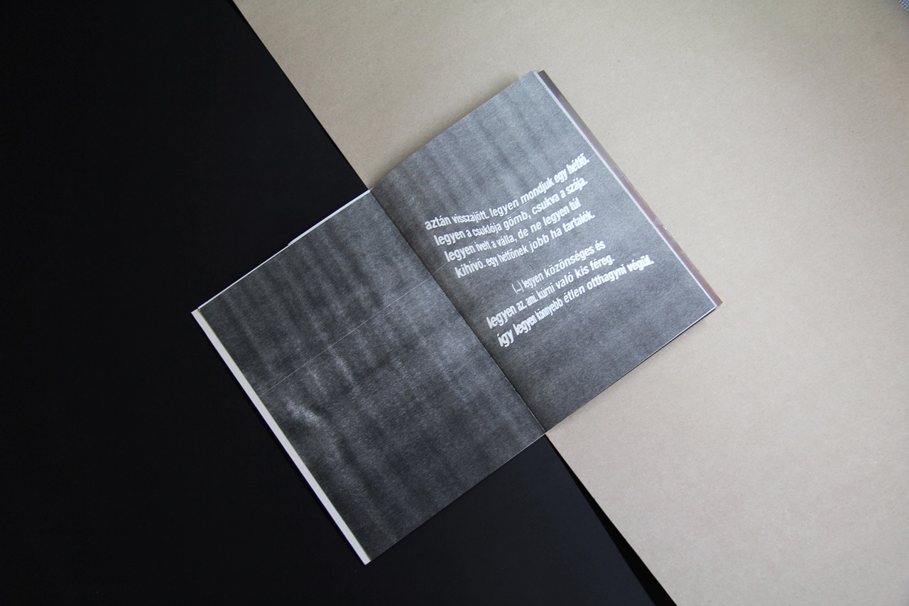 Ilyen például a rizográf technika, ami egyrészt a fanzine kultúra egyik fontos eszköze, másrészt – és ez volt a fontosabb – a nyomat porózus felülete miatt az emlékezés sérülékenységére rímelő módszer. Másik ilyen megoldás például a letterpress, a vakdombonyomás, de a kötészeti lehetőségekkel is igyekeztem oly módon élni, hogy a nyelvi megoldásokat erősítse. A tipográfiai elemek megjelenítésében pedig a kinyomtatott, majd manuális torzításban visszafotózott, majd újra kinyomtatott szövegekkel az emlékezetben tapasztalható kognitív torzulásra, a többszöri „szűrés” után deformálódott emlékekre próbáltam vizuálisan reflektálni. A végeredmény így egyfajta „kreatív vizuális olvasónapló”, játék közbeni tapasztalás.