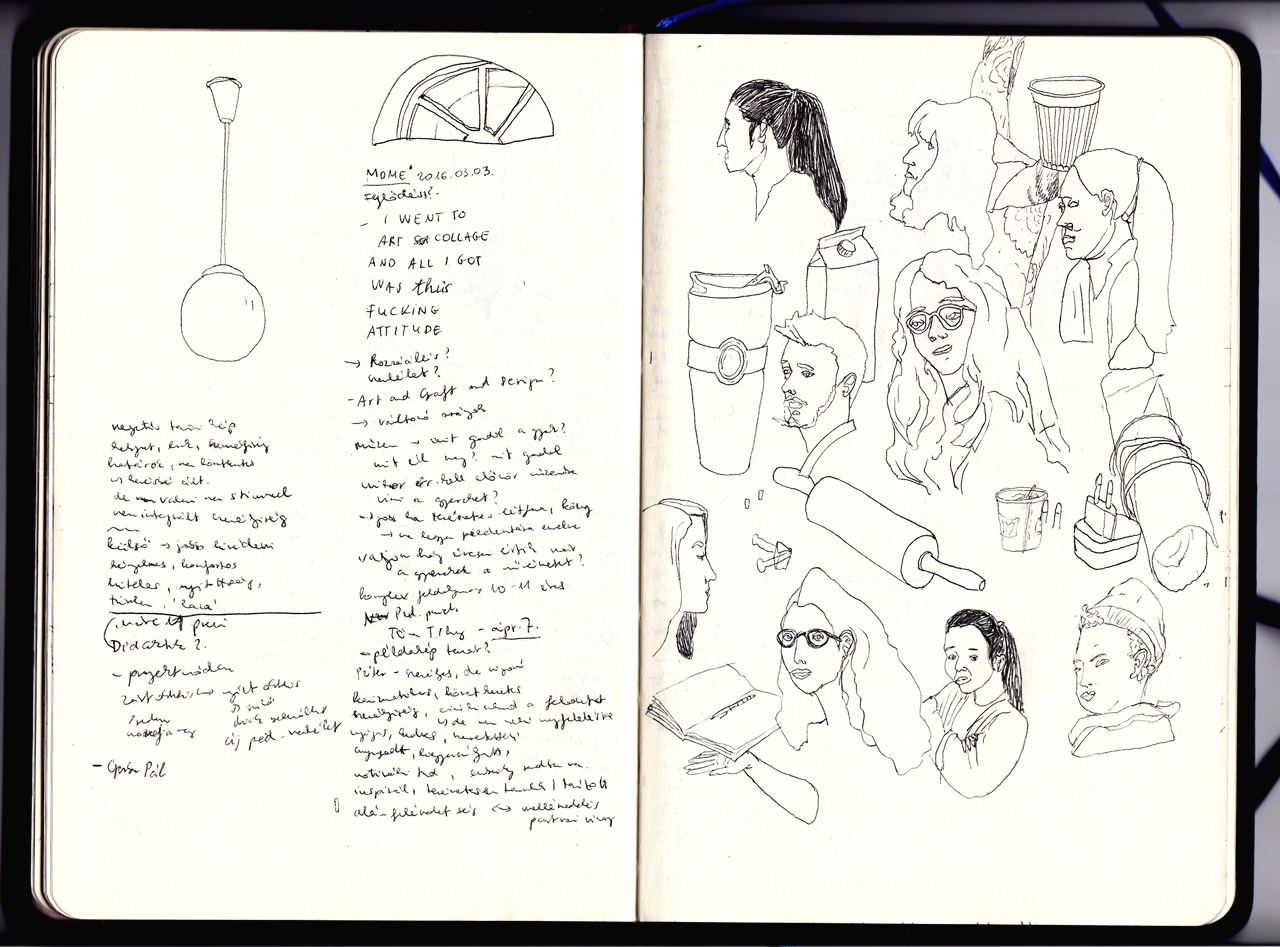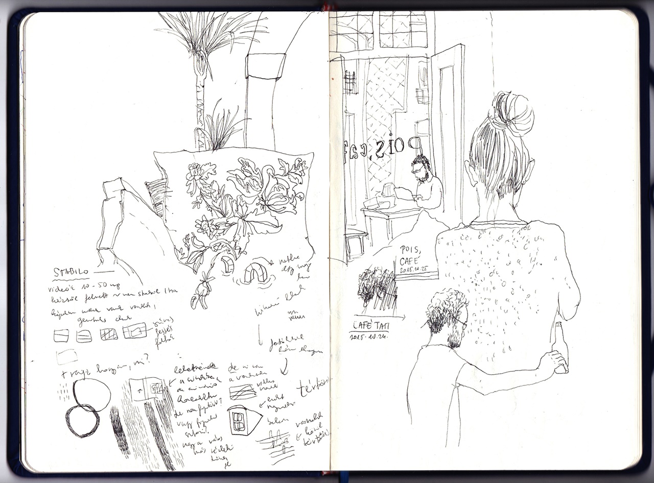 “Már kiskorom óta mindig is rengeteget rajzoltam, és az oviban még a szomszéd szobába is átkéredzkedtem Éva nénihez, hogy rajzoljon nekem bakkecskét. Valahogy mindig akadt papír a kezem alá vagy éppen egy füzet-féle. A rajzolás szenvedélye megmaradt, de tudatosan a sketchbook műfaját csak az egyetemre való jelenkezésnél ismertem meg. Az előkészítőn azt mondták a tanárok, hogy ilyen jó, ha van, sőt kell! Ott a csoportban kötöttem meg az első saját füzetemet.