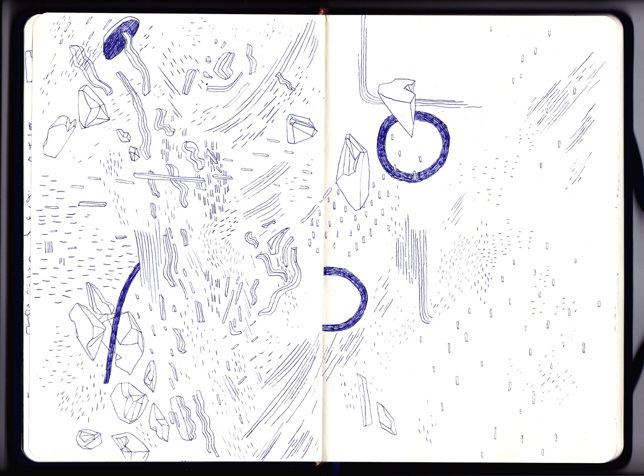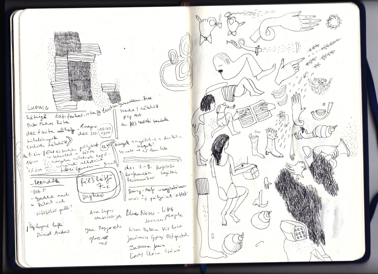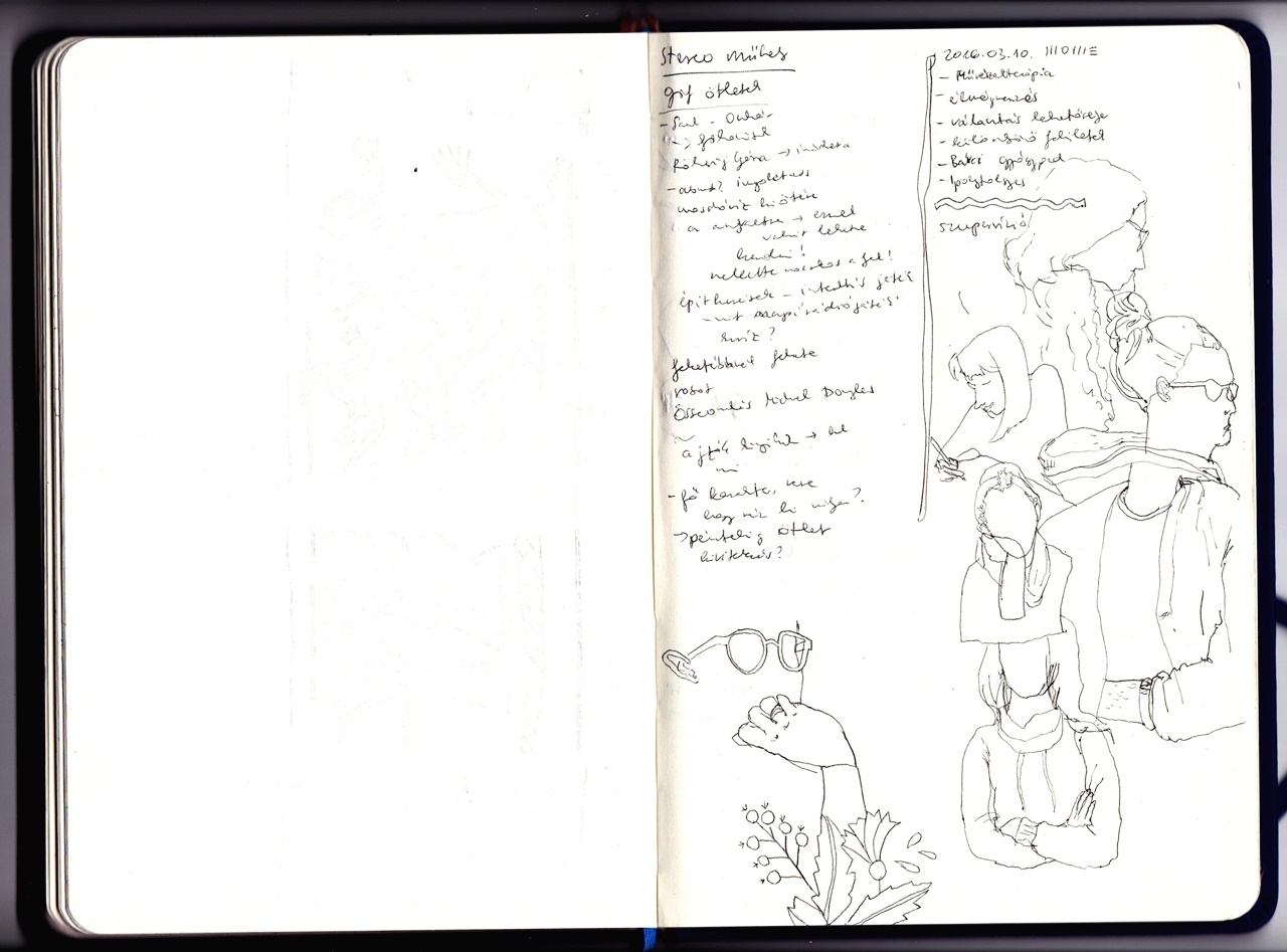 “Bele, vagy inkább mögé nézve ott a személyesség, titok, ötlet, probléma és megoldás. Egy nagyon összetett folyamat nyomait lehet tetten érni. A sketchbook egy olyan eszköz, ami felveti a személyesség-titok-nyilvánosság hármasát, az önreflexióra ad teret, ha úgy tetszik a magányra, de a közösségre is. Ott van benne az alkotói folyamat, a tervezés, a jegyzetek, az “elnefelejtsem”, a körülöttem levők, a kutyus, amerre járok, a beragasztott vagy összeszedett dolgok… a mindennapok lenyomata.”