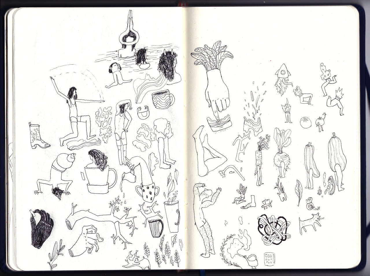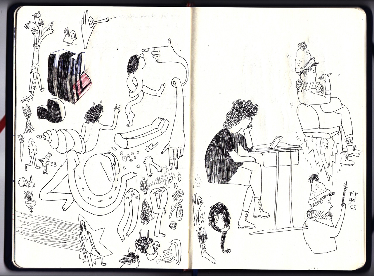 Ezúttal egy valódi sketchbook-guru, a műfaj szenvedélyes művelője és kutatója bocsátja közszemlére füzetlapjait a Pages-ben. Ha valaki, akkor Bogó Krisztina tényleg folyamatosan másolja a körülötte lévő világot. Megörökít, értelmez és újrarendez.