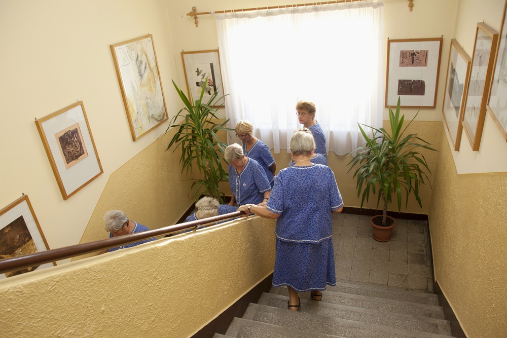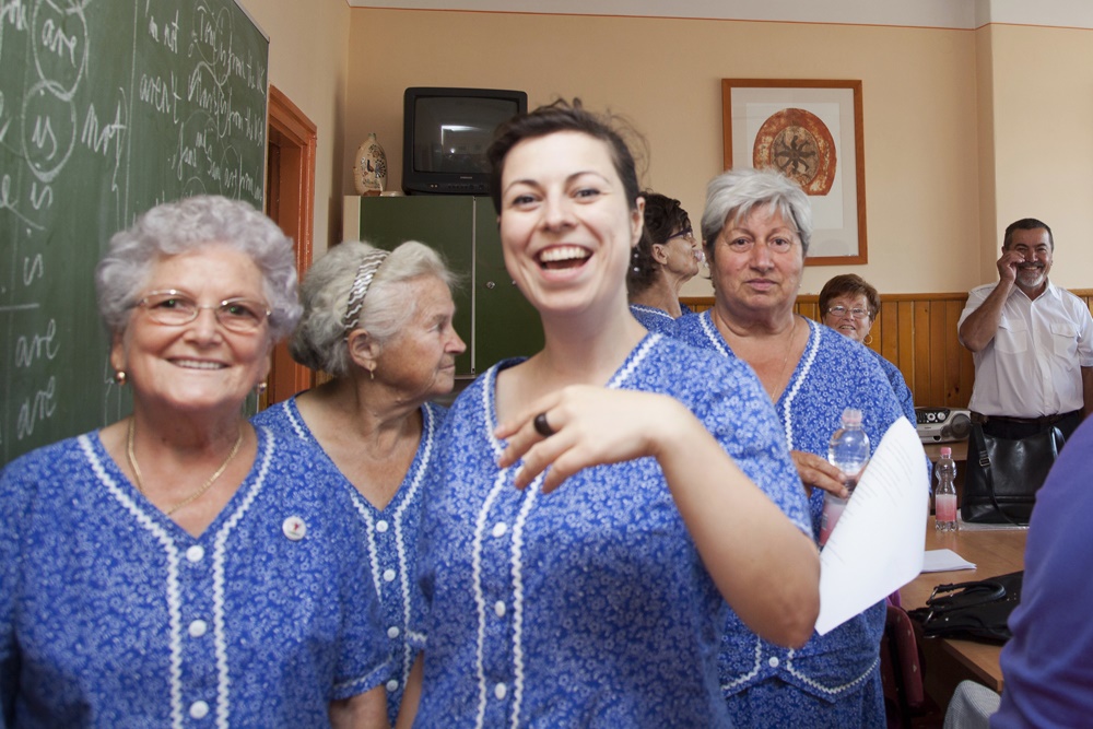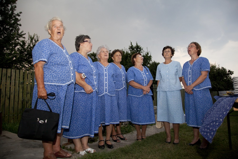 A képen dokumentált konyha fala egy Vámospércsi asszony otthonában található, aki a Hajdú-Bihar megyei város népdalkörének tagja. A sorozatban a Vámospércsi Népdalkör életéből látunk képeket, amelyeket Viola a népdalkör tagjaként, résztvevő megfigyelőként fotózott. A csoport kulturális szerepére, a körben éneklő asszonyok identitására reflektáló képeket a fotós és a szereplők között kialakult érzelmi kötődés hatja át. Fátyol Viola munkáiban visszatérő téma az eltérő nőgenerációk tagjai közti különbségek egy-egy szituáción keresztüli feldolgozása. Ezeket a különbségeket Viola a képein megjelenő szereplőkkel való azonosuláson, identitáscserén keresztül értelmezi – a különbségeket az összetartozás közös nevezői egyenlítik ki. Dressing című videójában Margit nénivel, a Népdalkör egyik tagjával cserél fellépő ruhát, a Nyújtás-ban pedig egy 2009-ben készült fotója – a fent is látható – Mama tésztaglóriával alapján összeállított animáció folytatásaként, az egykoron tésztát nyújtó nagymamájának mozdulatsorait ismétli. Munkájában a generációs különbségeken átívelő összetartozásról és a tésztanyújtás szimbólumába által megjelenített nőkép átalakulásáról is gondolkodik. Viola eddigi kutatási témáinak folytatásaként az ember közösségben való életét, a közösség megtartó erejének további aspektusait vizsgálja.