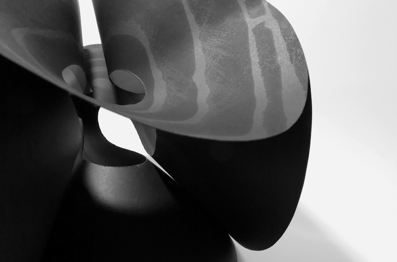 A tértestek merítése során a sík mintázat az élek és sarkok törésein átfutva rögzül, a testek térbelisége okán pedig a felületi suminagashi mintázat önmagába záródik.