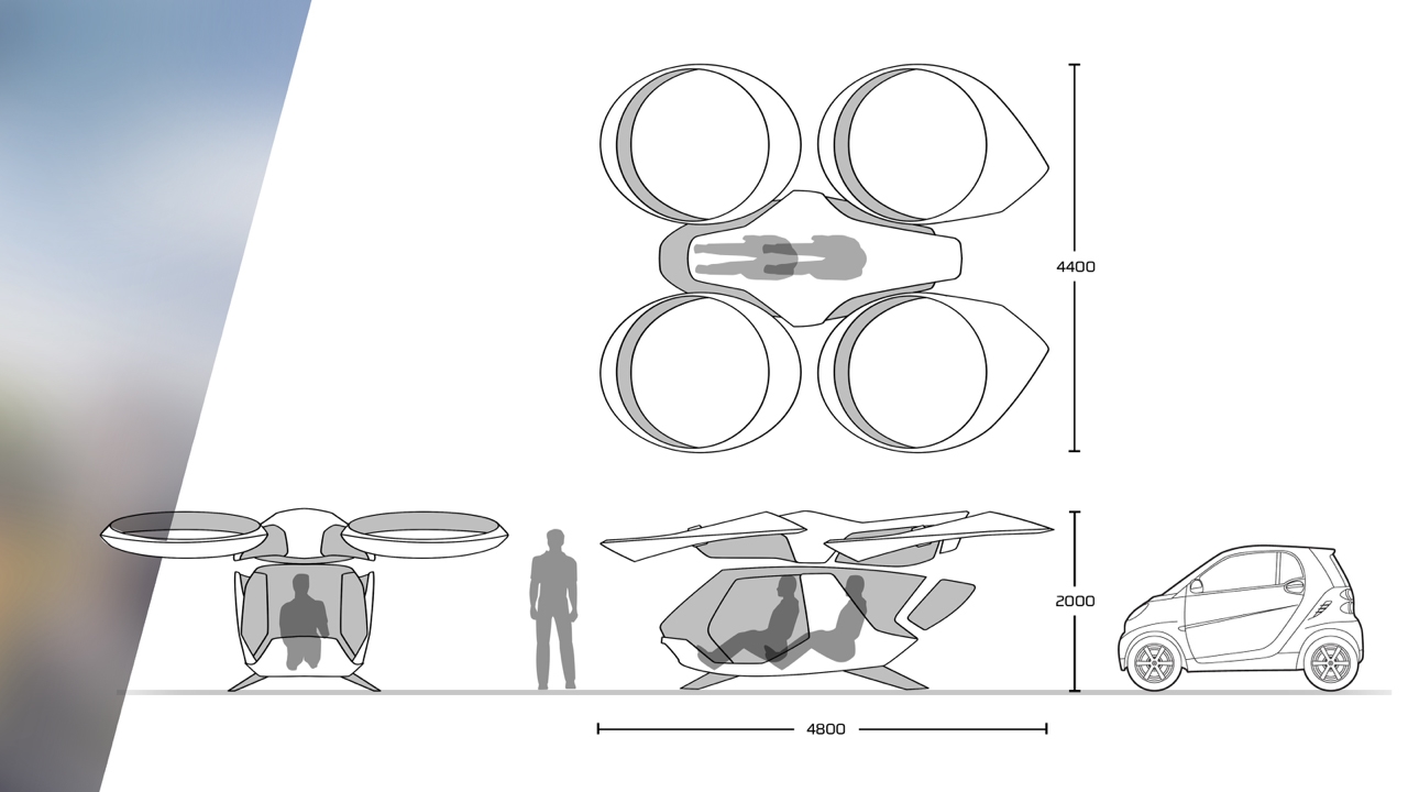 Méreteit tekintve a futurisztikus repülőjárművek SMART-járól beszélhetünk. Kicsi, kompakt és mozgékony. A lehetséges felhasználási területei ugyanakkor széles spektrumon mozognak, a hegyi mentéstől és a katasztrófa elhárítástól kezdve a „poszt-sci-fi” városnézésig.