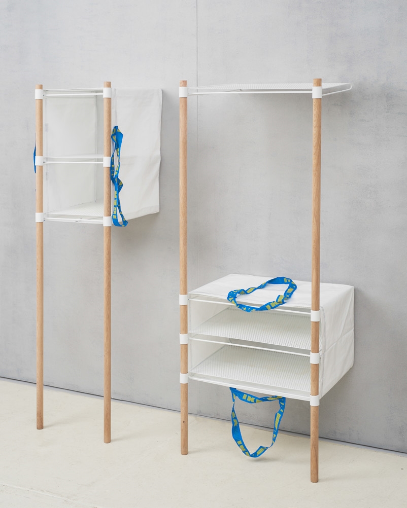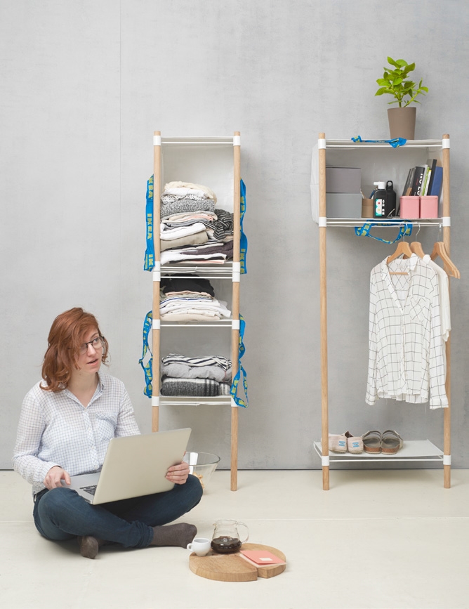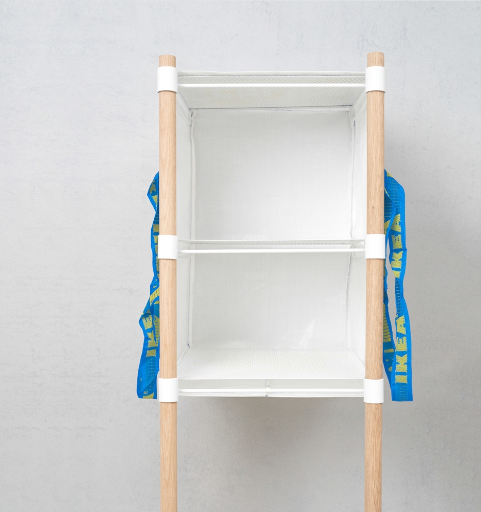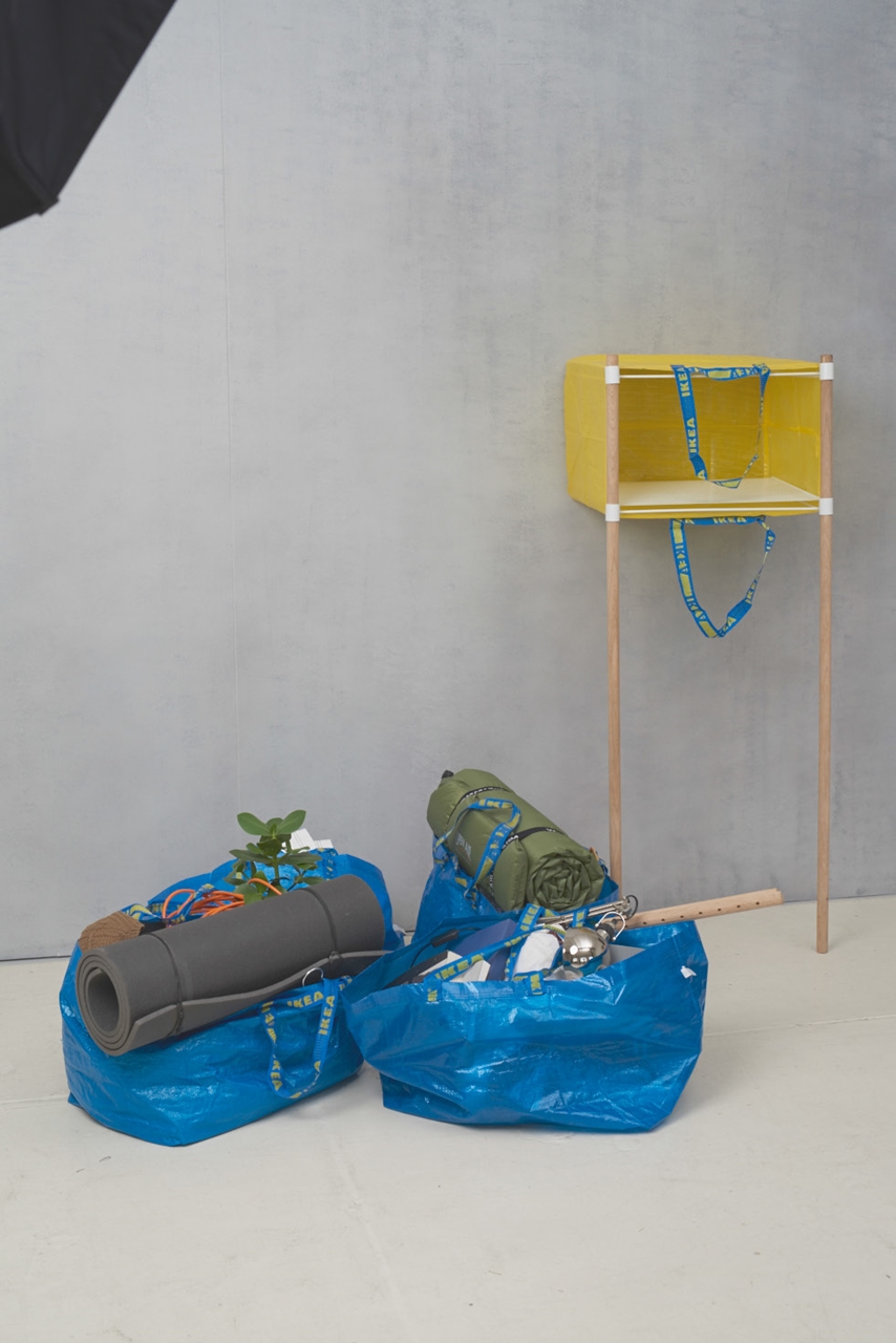 Koczka Kristóf lényegében egy termék-hacket hajt végre, és olyan vásárlói igényekre mutat rá, amikre tervezéskor, illetve forgalomba kerülésekor az IKEA nem gondolt. Az Out of the bag egy könnyű szerkezet segítségével szekrényszerű tárolóvá alakítja a szabványos kék zsákot. Az eredmény egy pillanatok alatt stabil bútorrá vagy szállítható csomaggá alakítható termék.