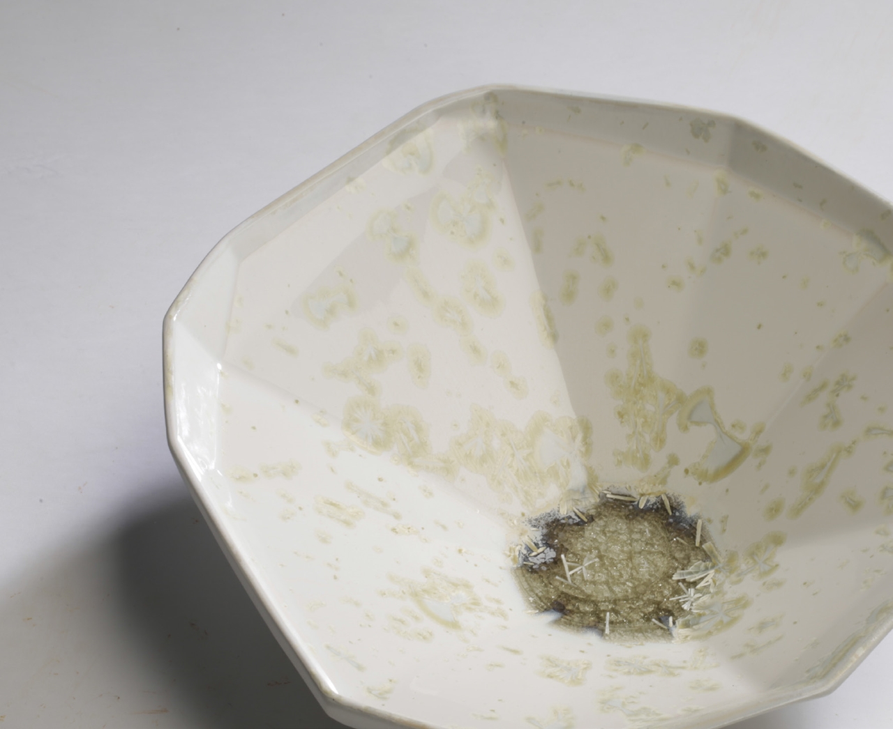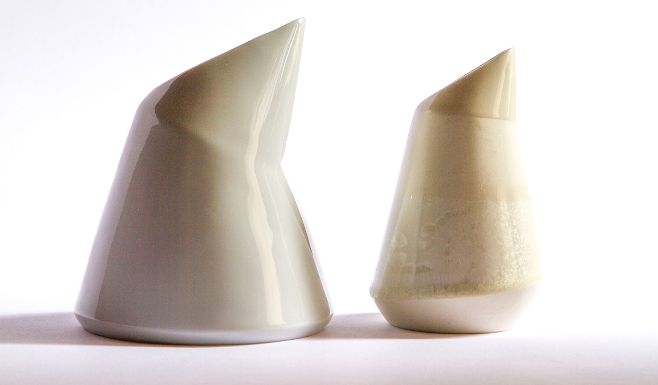 A készlet formavilága az ABSTRACT NATURE projektben elkezdett kúp formakísérletekből nőtte ki magát. Esztétikáját tekintve pedig a különleges égetéstechnikával készült kristálymázak határozzák meg. Kata a mázakat több tárgy esetében is különböző színezett öntőmasszák kölcsönhatásának teszi ki.