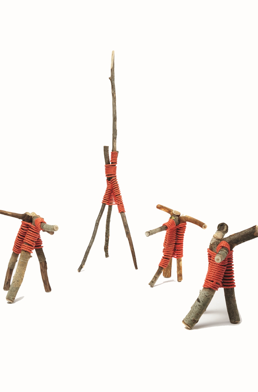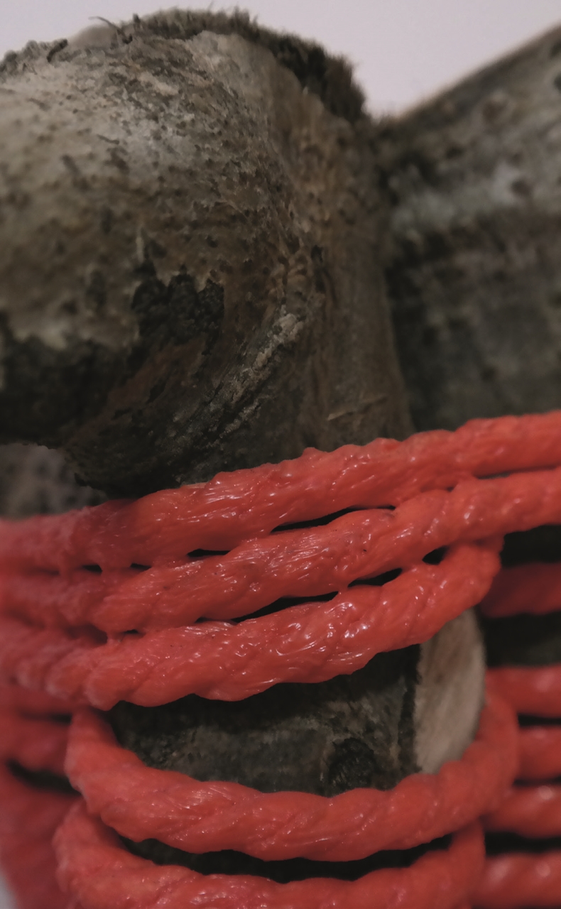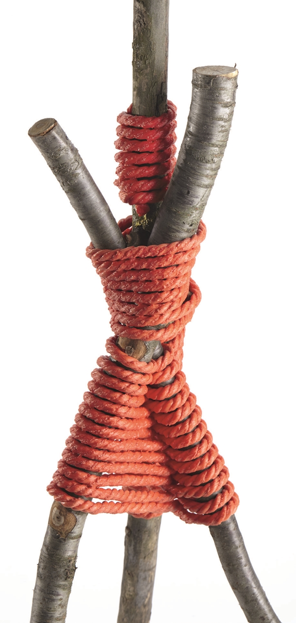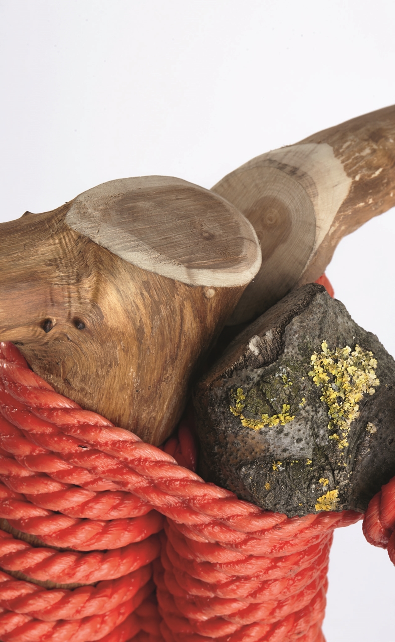 Wágner Ákos könnyűszerkezetű bútorkollekciójában hagyományos és modern alapanyagokat ötvöz. Az avarban talált faágakat poli-propilén kötelekkel rögzíti egymáshoz.