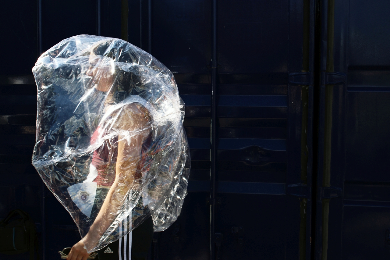 Barkóczi Máté szokatlan irányból közelít az esőhöz: nem mint probléma, hanem mint relaxációs környezeti hatás. Miközben a megázástól óvjuk magunkat, szem elől tévesztjük, hogy milyen nyugtató energiákat hordoznak magukban a fejünkre hulló vízcseppek.