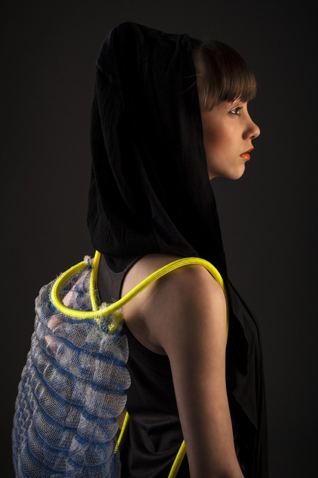 Ágotát, aki tanulmányait részben kötő szakon végezte, nagyon érdekelte a folyamat, ahogyan az anyag létrehozásától, tulajdonképpeni megteremtésétől, eljuthat a forma megfogalmazásáig. Így született meg ez az első kollekciója, ami idén már a Formatervezési Díj kiállításán is szerepelt diák kategóriában.