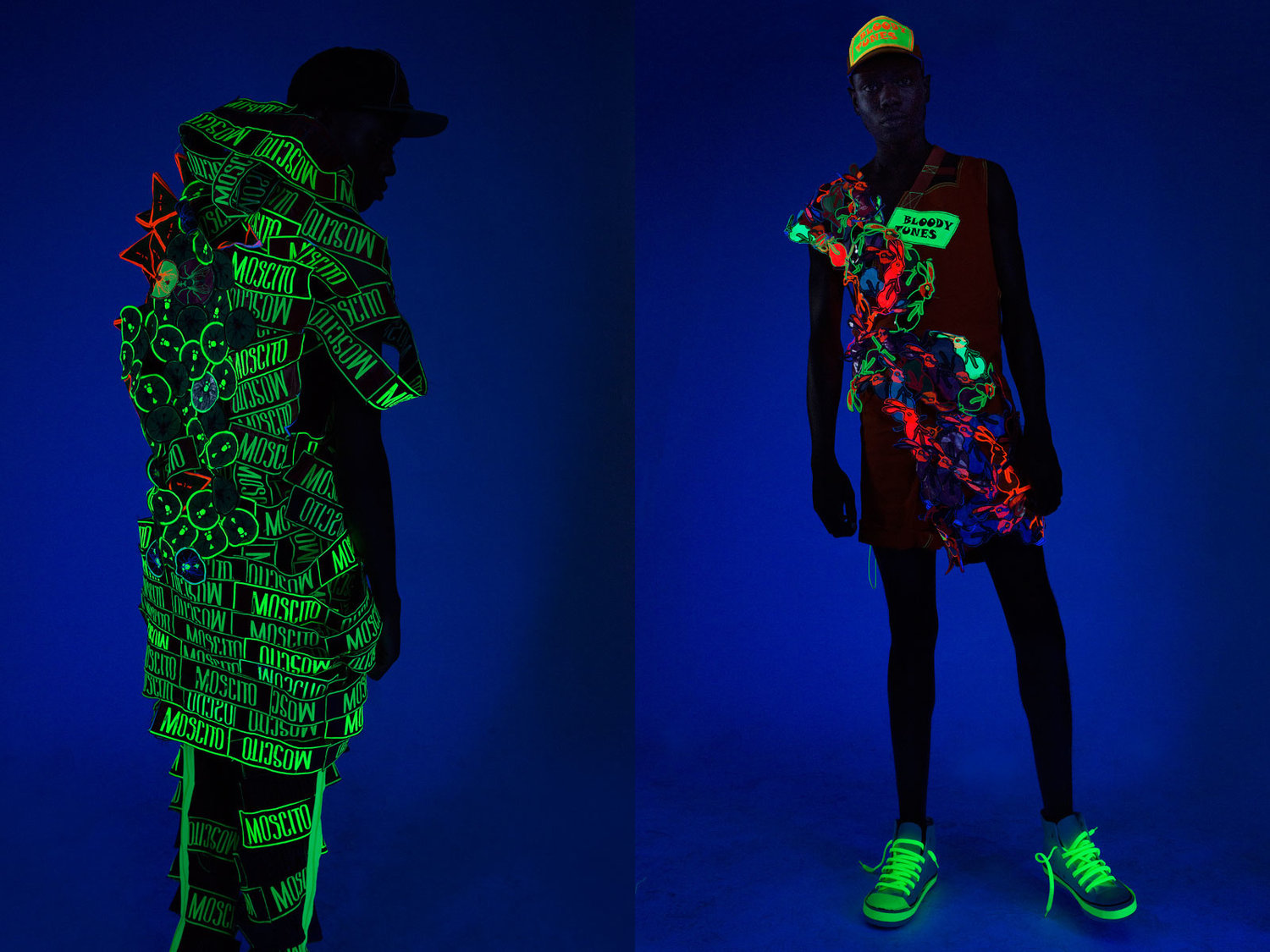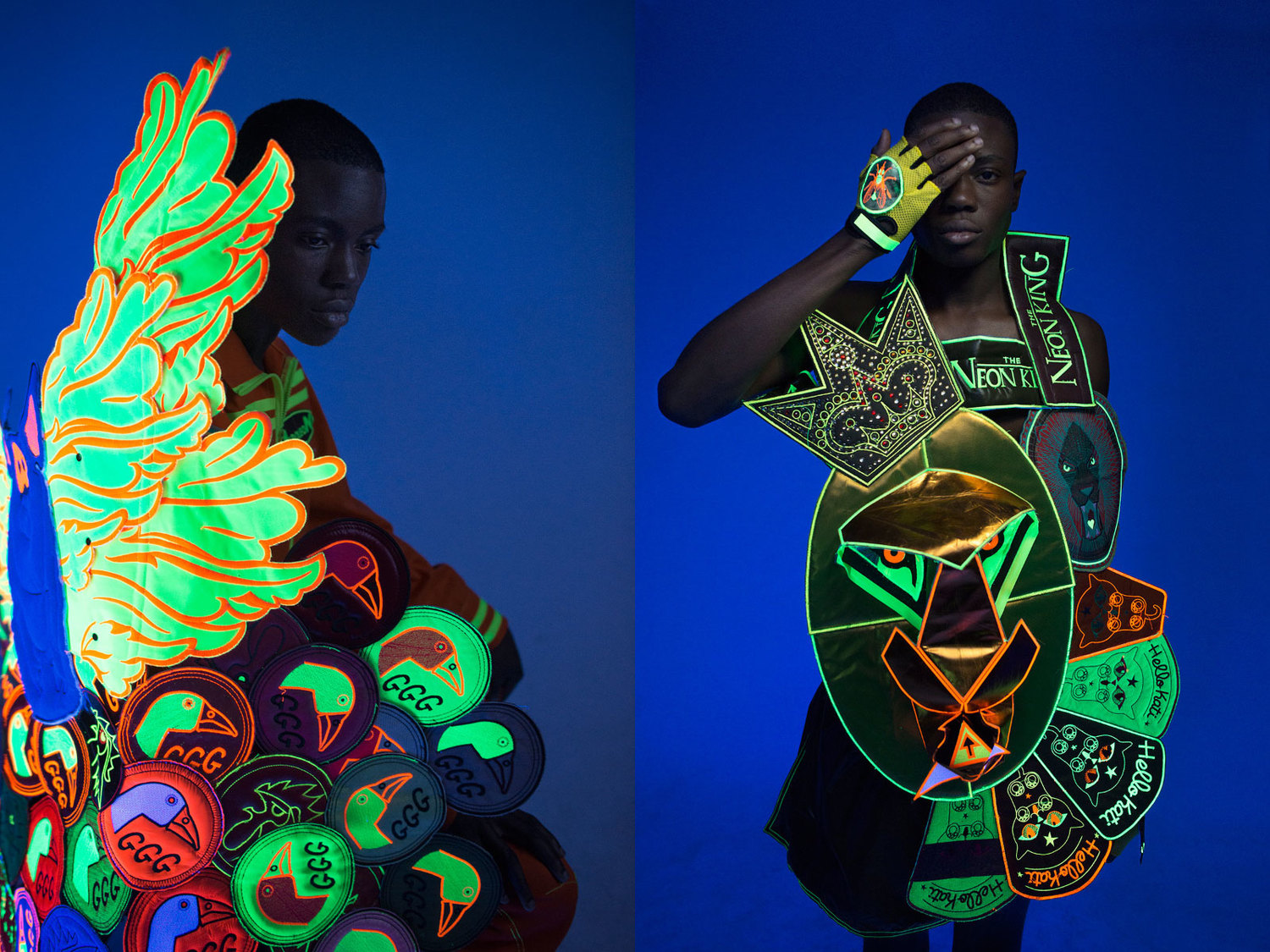 A ruhák egy újfajta látásmódot, dimenziót kínálnak a nézőnek mind az anyag-, mind pedig a színhasználatban. A harsány, neonszínű anyagok – melyek egyébként UV fényre is reagálnak – egy kortárs trendet állítanak kontrasztba az ősi, törzsi öltözékekkel. Az afrikai törzsek ruházatában dominánsak a harsány színek, a durva anyagok, és a határozott mintázás, melyet ebben az esetben a felvarrók helyettesítenek.
