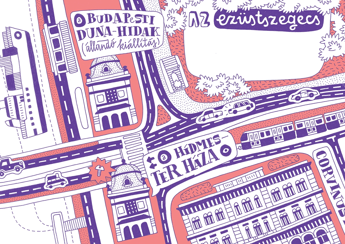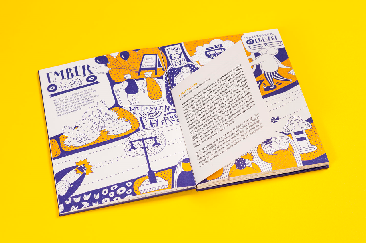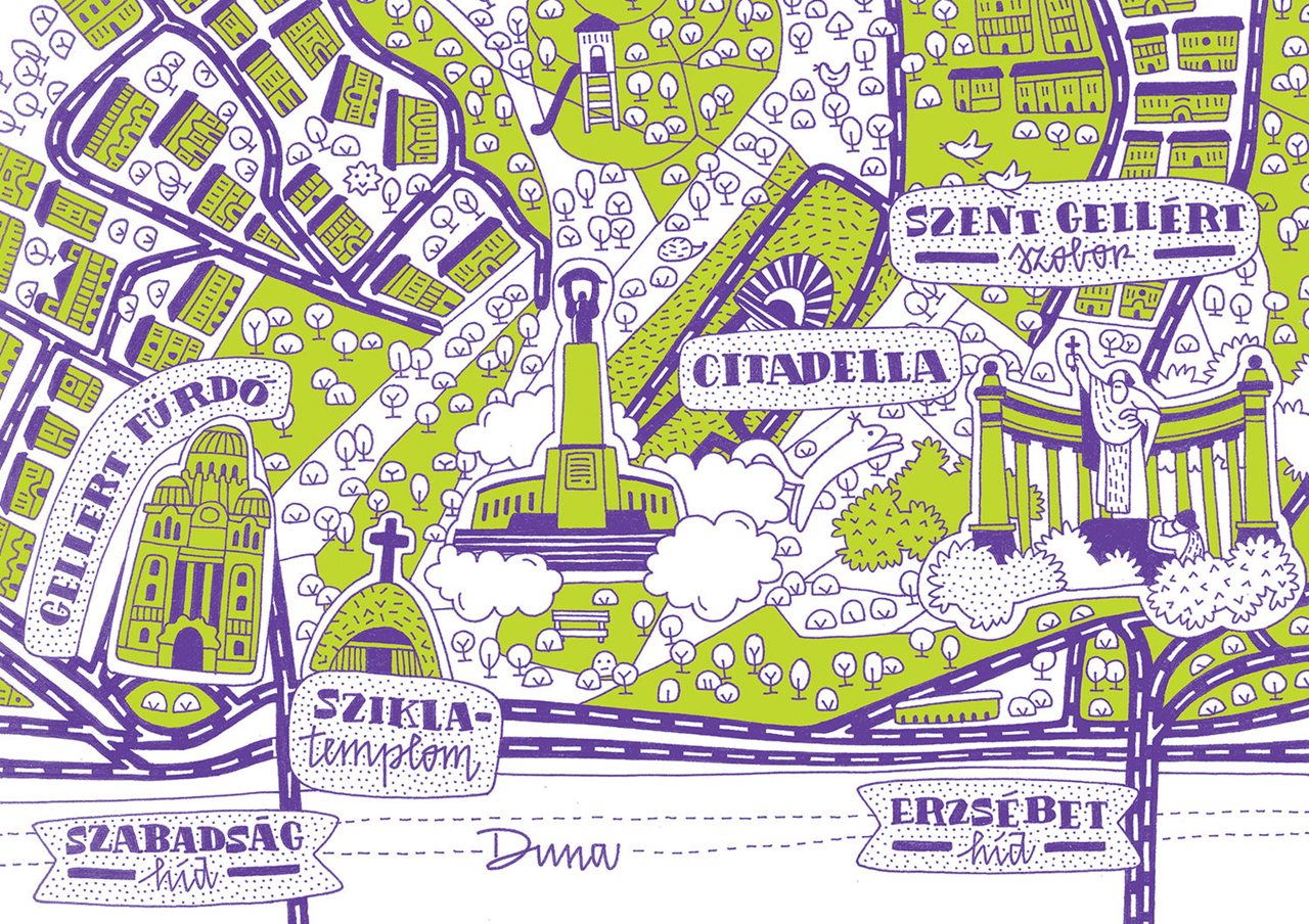Héjja Luca frissen diplomázott a MOME tervezőgrafika szakán, diplomamunkáját pedig a felfedező szeme és az itt töltött évek inspirálták. A könyv nemcsak grafikai elemeivel van segítségünkre a főváros új arcának megismeréséhez, hanem a különböző budapesti helyszínek között kedves feladatokkal és játékokkal is néhány perc szemlélődésre késztet. Nem kell hozzá szállást vagy repülőjegyet foglalni, elég a legkényelmesebb cipőnket felvenni, a könyvet pedig a hónunk alá csapni.