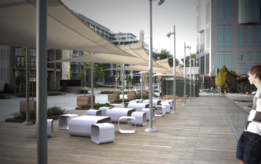 Számos kültéri egységgel kísérletezett. Formanyelve fejlődött, változott az évek során. Elsőként a C1- es kültéri padcsalád megalkotásával foglalkozott, mely fegyelmezettséget sugall feszes vonalaival és geometrikus formáival.