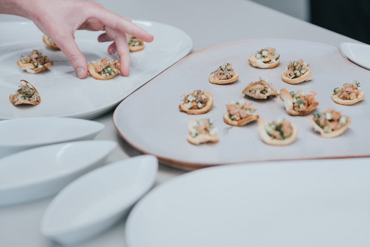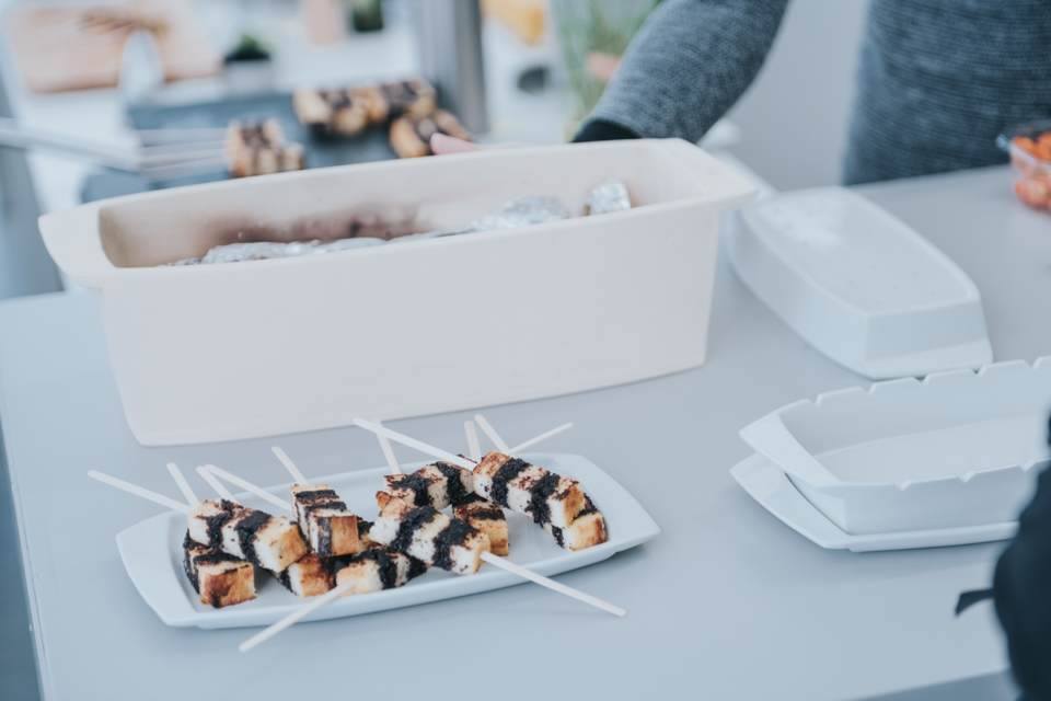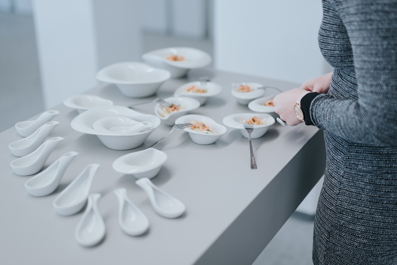 Bernáth József: Így van – elsősorban felhasználóként igyekeztem kommentálni a felvetéseket. Nem azt mondtam nekik, hogy mit szeretnék tálalni az eszközön, hanem hogy egy állófogadás esetén vendégként hogyan nyúlok az adott tányérhoz, vagy hogyan fogom meg a falatot. Például, egy pálcás ételnél tudni kell a pálcát hova tenni. Konkrét számokban fejeztem ki bizonyos szempontokat: mekkorák a tálalóasztalok, mennyi étel kerül egy-egy tányérra, és így tovább. Mindezt azért, hogy ne később alakuljanak ki gátak, és ezeket a megkötéseket az elejétől fogva kombinálhassák azzal a formavilággal, amit ők kitaláltak.