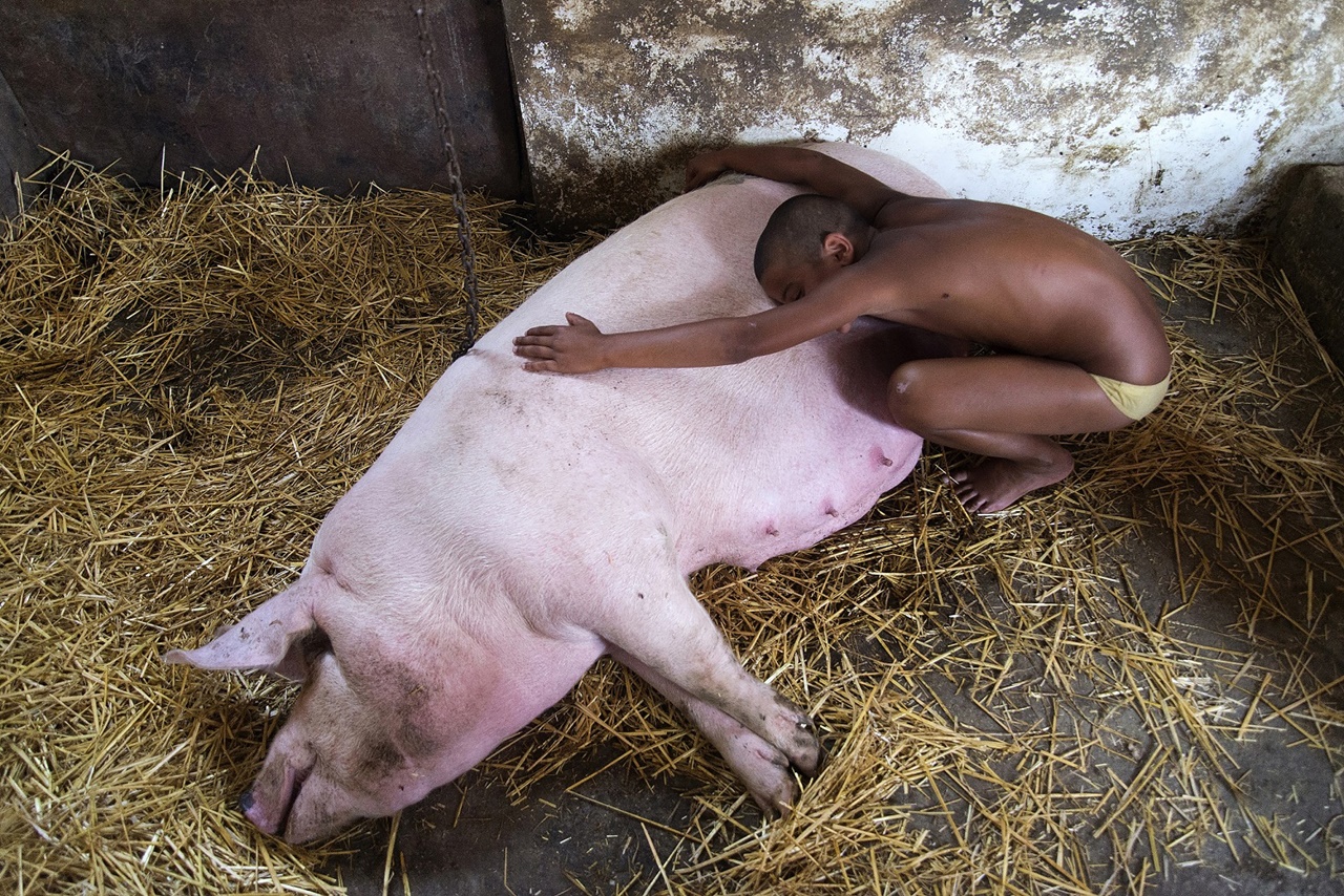 A sorozat talán legikonikusabb képe az, amikor egy kisfiú egy malacot ölel. Mesélnél a kép keletkezéséről?