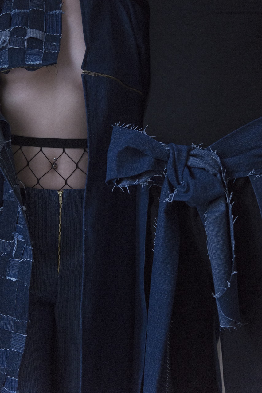 A kollekció központi eleme a farmer, mely reneszánszát éli a high fashion és a streetwear kultúrában egyaránt, valamint az anyaghasználat fő inspirációforrását jelentő rock ‘n’ roll szubkultúrához is szorosan kapcsolódik. A különleges technikával készült feliratos farmerkabátokat, farmerruhákat, és nadrágokat, a fekete, kék, szürke és fehér színekben variálódó alapdarabok egészítik ki. A kollekció ruhái kézzel készültek, és a különleges technikák, a szövés, rojtozás, festés használata révén minden darabja egyedi, megismételhetetlen. Dóra a kollekció készítése során a geometrikus formákból indult ki, a körök, négyzetek, téglalapok alkalmazása lehetővé tette, hogy szinte végig a „zero waste” elvét tudja követni, így a darabok minimális hulladék keletkezésével készültek.