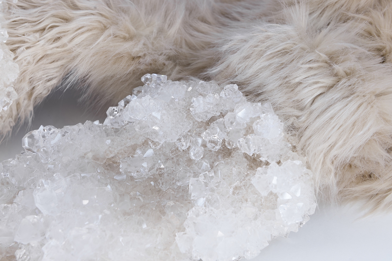 A látszat ellenére maga az installáció sem statikus állapot rögzít. A plexihengereken belül egy lomha ökoszisztéma működik – önálló természeti rendszer, amelyben a leadott nedvességet a kristály újra és újra önmagába tudja zárni; így tartja “életben” magát a búra alatt.