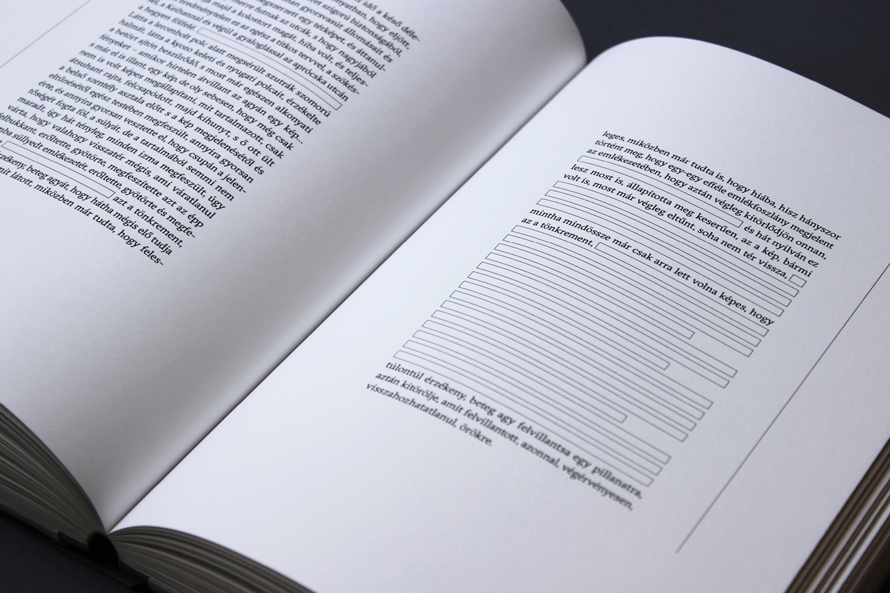 Folyamatos átalakulásban vannak az olvasáshoz és a tudásmegosztás hagyományos formáihoz kapcsolódó szokásaink; Vincze Lilla ebben a helyzetben keresi a könyv helyét és lehetőségeit. Habár az írott szöveg átélése nem tűnik felcserélhetőnek az új médiumok által nyújtott élményekkel, a könyv határai talán mégis tágíthatók. A MOME frissdiplomás grafikusa ebben a szellemben tett kísérletet egy regény vizuális és tárgyi továbbgondolására.