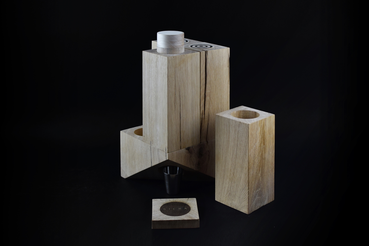 Kovács Apor tudatosan használja a véletlent. Ahogy ő fogalmaz, a “tervezett tervezetlenség” érdekli, és a MOME formatervező művész szakán született mestermunkája is erről tanúskodik. A Sicra olyan elegáns eszköz, ami a pálinkaérlelés természetes folyamatát alaposan átgondolt designnal ötvözi.
