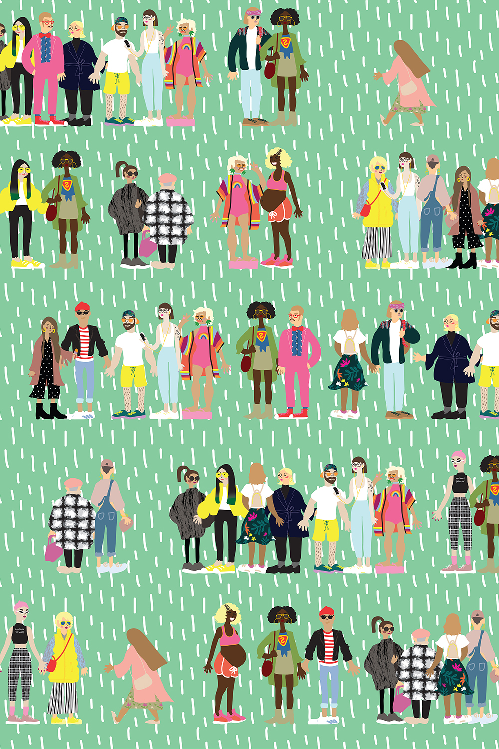 Nyitott szemmel jár a világban, és tudatosan keres olyan dolgokat maga körül, amik kiváltják belőle azt a bizonyos „Milyen kedves!”-reakciót. Felfigyel azokra a részletekre, amik jókedvre derítik, lehet az akár egy vidám színes szettben lévő idegen a mozgólépcsőn, vagy egy szórakoztató állat az Instagramon. Ennek a lenyomatát őrzi az a mintasorozat is, melyet a határaikat feszegető, izgalmas kisugárzású emberek ihlettek. Dorka általában a telefonjával dokumentálta őket, majd a laptopján kezdett vázlatokat rajzolni.