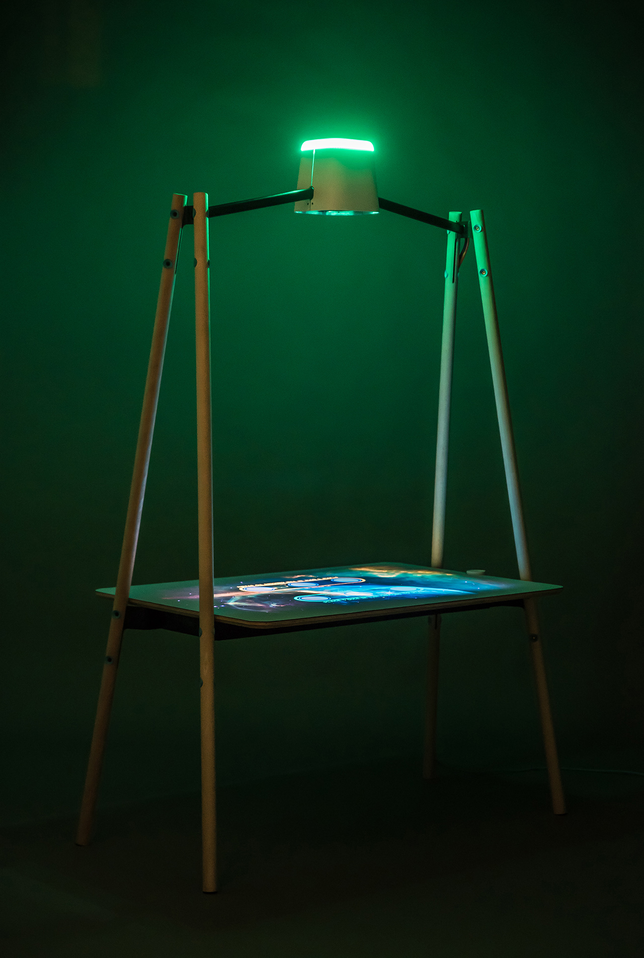 A klasszikus társasjáték és a virtuális világ keresztezésével létrejött ATMO – interaktív társasjátékkonzol tényleg a jövőbe repíti a felhasználókat. A szerkezet tulajdonképpen egy asztalból és egy kivetítőből áll, az AR technológia segítségével pedig a társasjátékok végtelen tárháza állhat rendelkezésre. Az eszköz praktikus kialakításának köszönhetően – és a kor elvárásai szerint – hordozható.